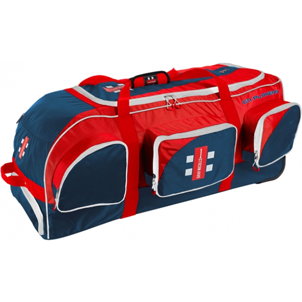 Large stand up wheelie bag with a large main section for storage of all main items of kit. Internal padded bat pocket for up to 3 bats and built in side pockets for extra storage and wet pockets. Features - Stand up design with seperate protective bat pocket, which can hold up to 3 bats. Large main compartment for simple storage combined with 4 side pockets for small items. Premium quality wheelie bag with full length runners and deluxe wheels. Size - 95cm x 40cm x 40cm Number Of Pockets - 5 Colours - Navy/Red
