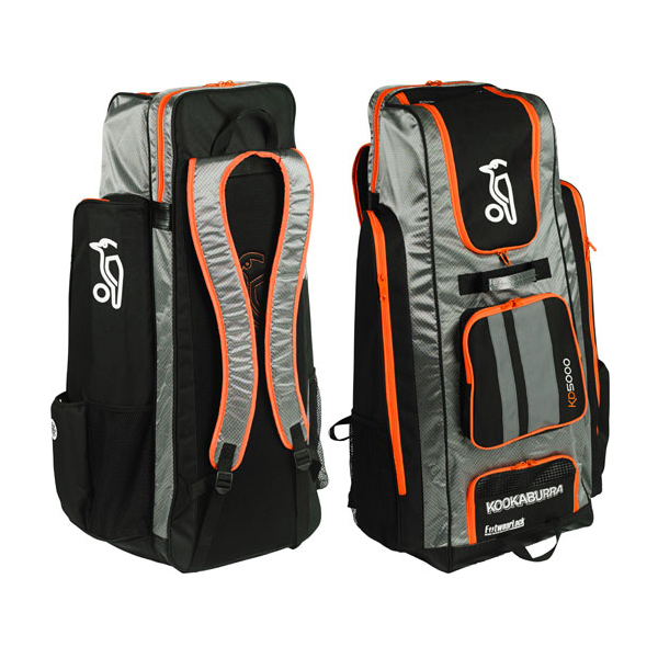 Ergonomic Design Large Capacity Easy access padded bat compartment for 2 bats ExBat Pocket External Mesh Pocket Footwearlock x2 Leg guard pockets External Drink Bottle 'fridge pocket' Weatherproof Ruberised Base Premium adjustable Padded Straps Premium Ripstop material & 600D Kooka Tuff Polyester 90cm x 45cm x 35cm