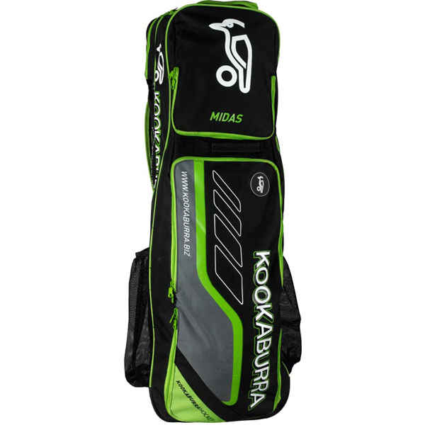 Holds up to 6 sticks plus kit New design and functionality Fully padded stick compartment and multiple sections for kit Hidden rain cover to ensure kit keeps dry Additional interior pocket for shoes Exterior mesh pockets Adjustable padded double shoulder strap Top and front pick up handle with carabiner clip User friendly name tag and internal mobile phone holder Internal zip pocket and MP3 headphone access Durable scuff guard base DIMENSIONS: 100cm x 30cm x 26cm